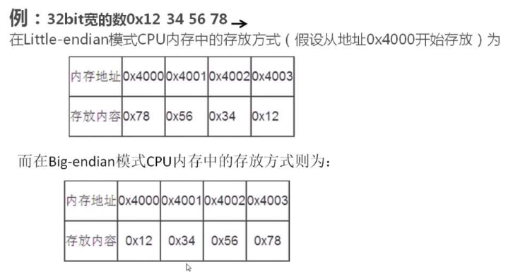 小端法(LIttle-Endian):低位字节排放在内存的低地址端即该值的起始地址,高位字节排放在内存的高地址端